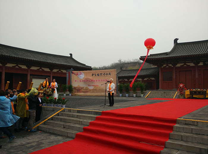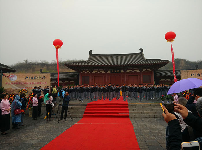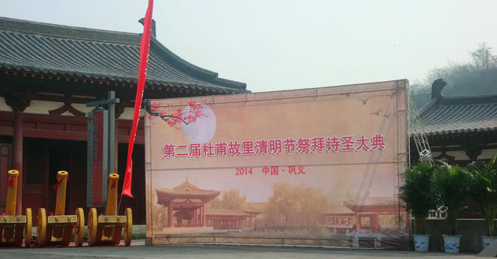 4月5日清明節當天上午9時許,在清明時節的紛紛細雨之中,杜甫國際詩歌節——第三屆清明節杜甫故里祭拜“詩圣”大典在鞏義境內杜甫故里拉開帷幕。來自海內外的近百位詩人、學者等各方來賓云集“詩圣”故園在此一起祭拜“詩圣”。本屆詩歌節邀請了近百位海內外知名詩人參加,其中有臺灣詩人鄭愁予;大陸詩人舒婷、王家新、耿占春以及韓國詩人黃東奎等。
