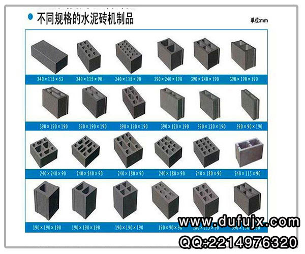 1、市場(chǎng)上比較常見(jiàn)的水泥磚機(jī)的制品的規(guī)格是 240×115×53mm標(biāo)準(zhǔn)磚,簡(jiǎn)稱(chēng)標(biāo)磚;240×115×90mm八孔磚: 390×190×190mm空心磚等多種規(guī)格