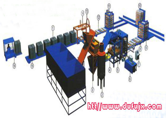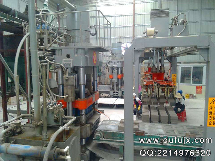 1、設計合理,采用自動接送板系統,送料分料、強制布料系統,壓頭同步和??蛲较到y,可自動循環生產,生產效率高,出磚量大,制品質量穩定。